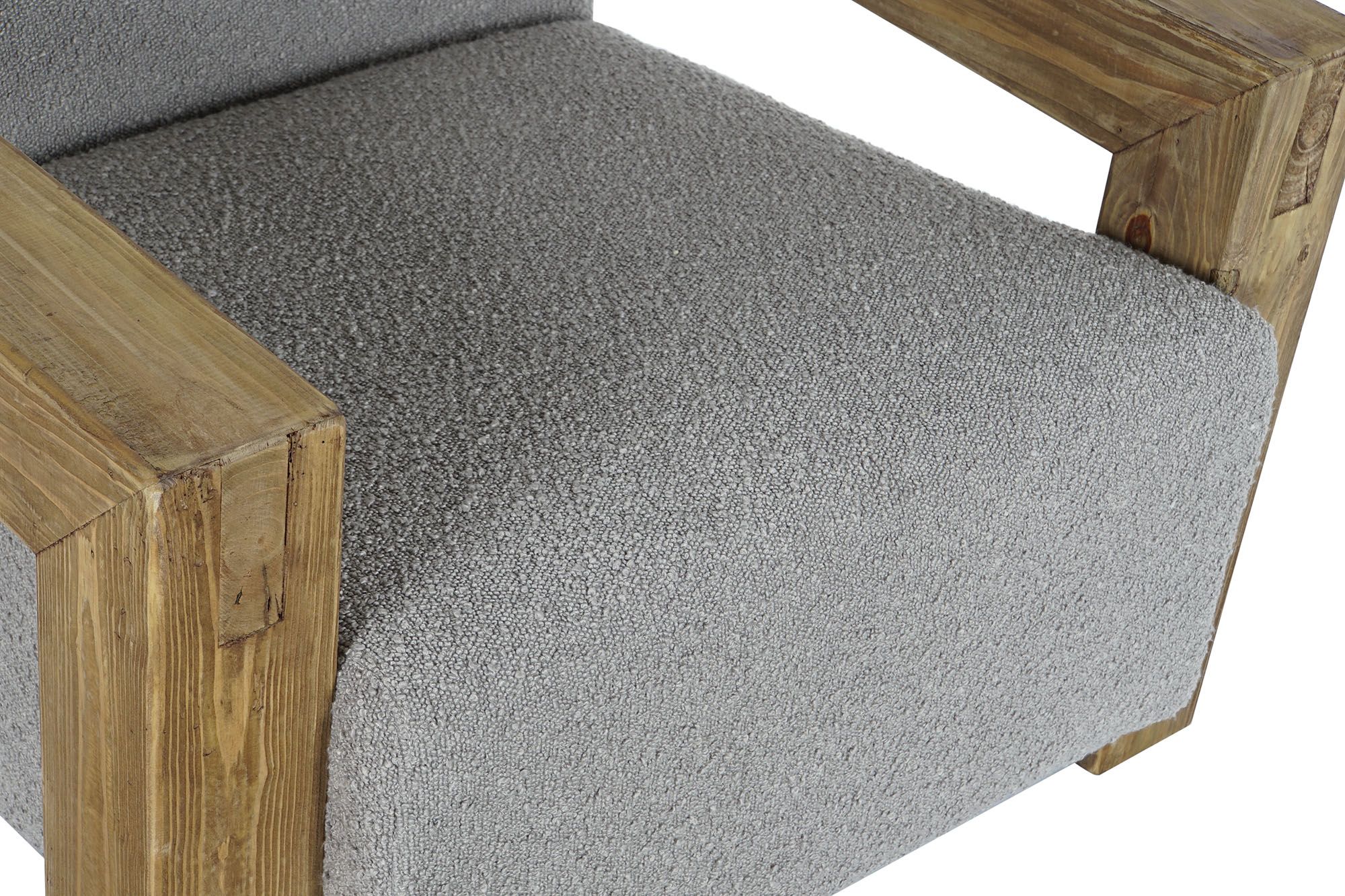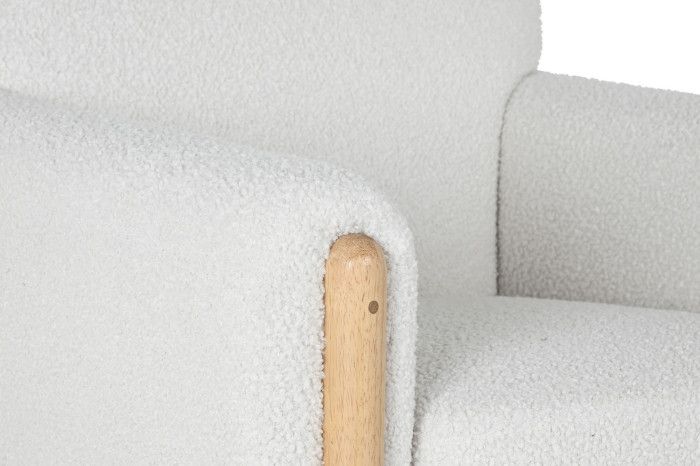 Material: Tejido: 100% poliéster, gramaje 300gr./m2 Relleno: foam, densidad 24kg./m3 asiento – 18kg./m3 respaldo. Asiento desenfundable con cremallera. Patas: madera de caucho Altura asiento: 50cm. Altura patas: 22cm. Altura reposabrazos: 62cm. Patas para montar. Las posibles sombras o marcas en el tejido son debidas al embalaje de las piezas. Desapareciendo fácilmente con la aplicación de vapor.