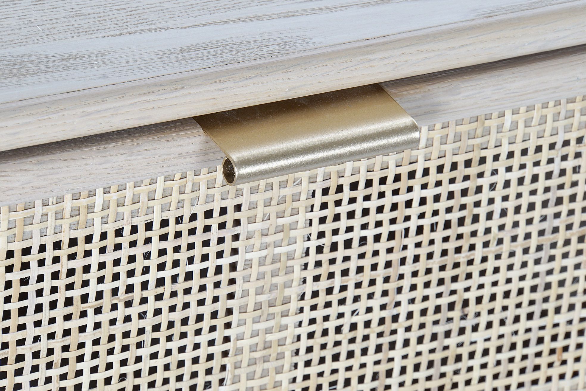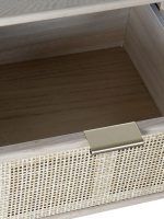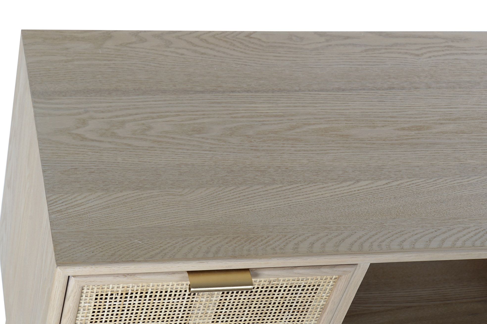 Este MUEBLE TV REJILLA con cuatro cajones frontales de rejilla con tiradores dorados envejecido y dos grandes huecos bajos para aparatos de wiffi, vídeos, etc, esta fabricado en MDF, de un aspecto a temporal que integrarás perfectamente en cualquier tipo de estilo decorativo, no pasará de moda es el típico mueble que nunca aburrirá, por su forma, por su color, por su estilo, siempre será un mueble apetecible. A nosotros nos encantan estos muebles tratados con maderas claritas, suaves, que no te piden cambiarlos nunca. Este mueble de tv rejilla lo puedes adaptar a otras muchas funciones, como mueble auxiliar para parador para un cualquier estancia de tu hogar, como mueble de recibidor, como auxiliar en una zona de paso, decóralo con unos cuadros sobrepuestos, o unos maravillosos espejos, con alguna bandeja en la que coloques alguna flor natural, unas botellas de cristal, unas velas, será muy fácil adornarlo, lucirá esplendido en cualquier ubicación.