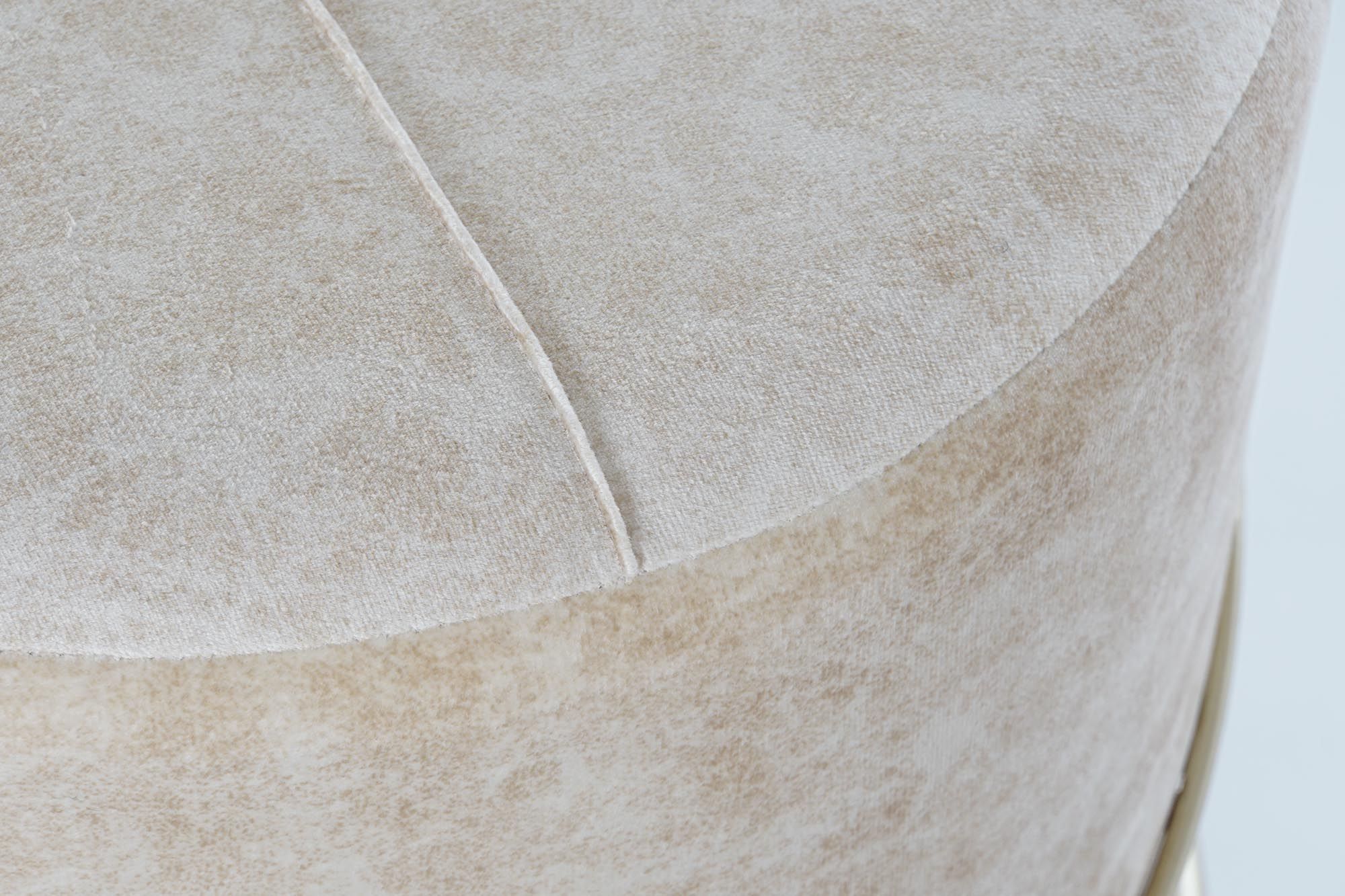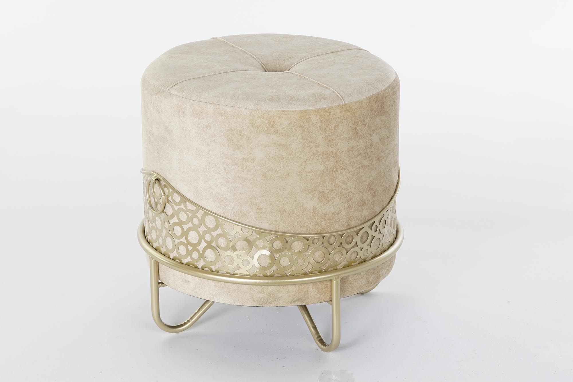 Puff tapizado en tejido blanco oro