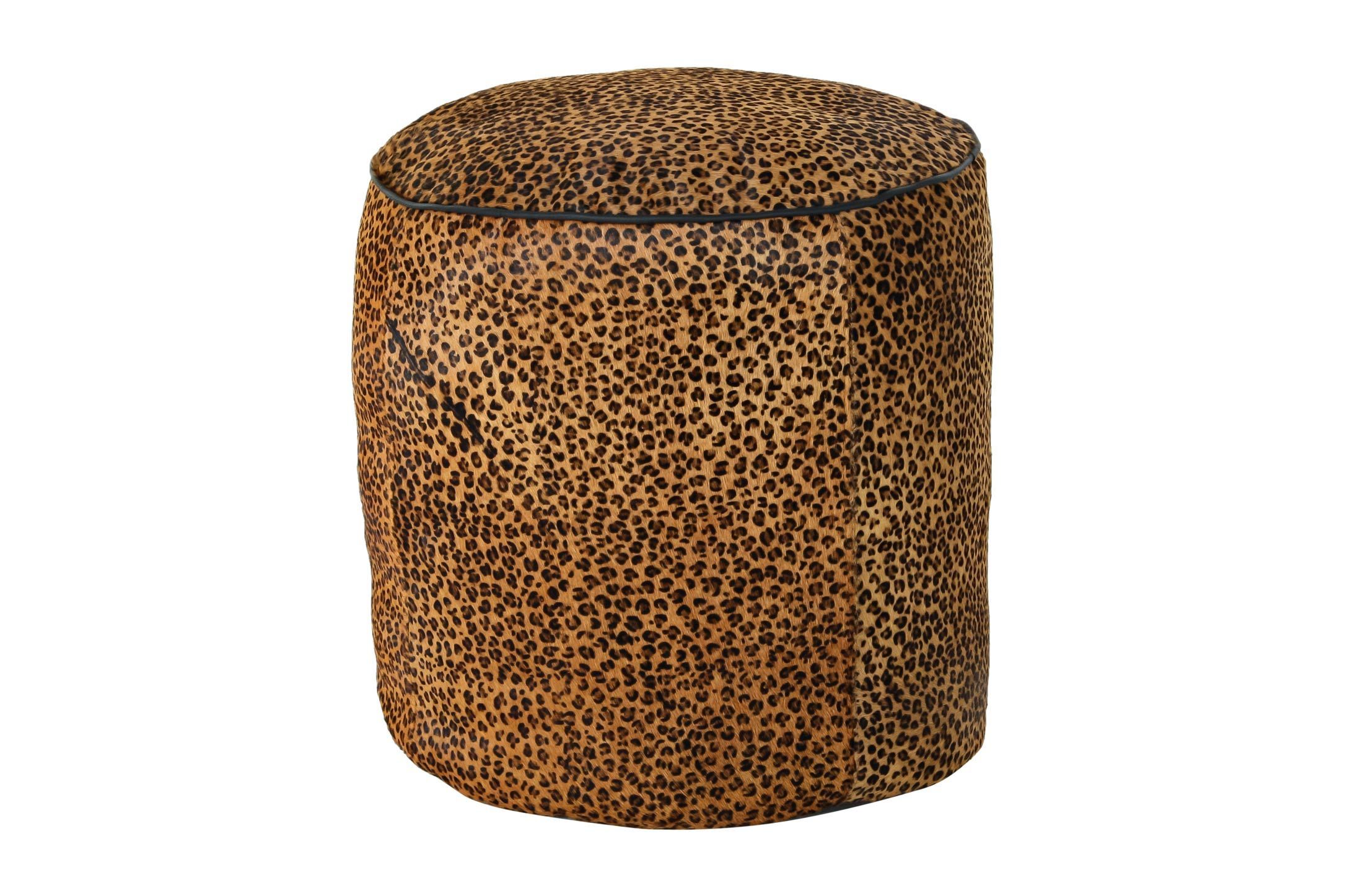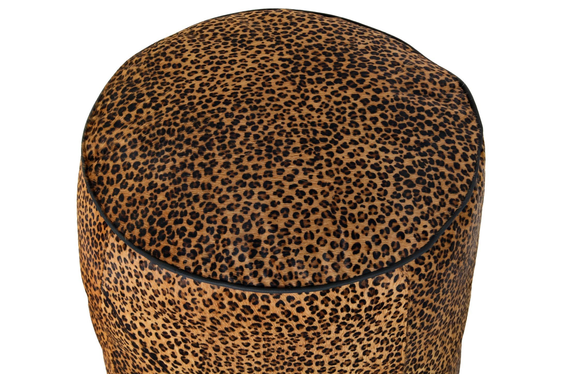 Puff tapizado en piel con motivos leopardo