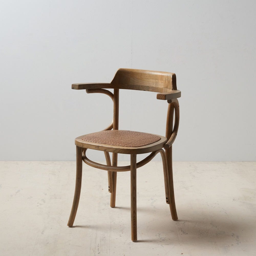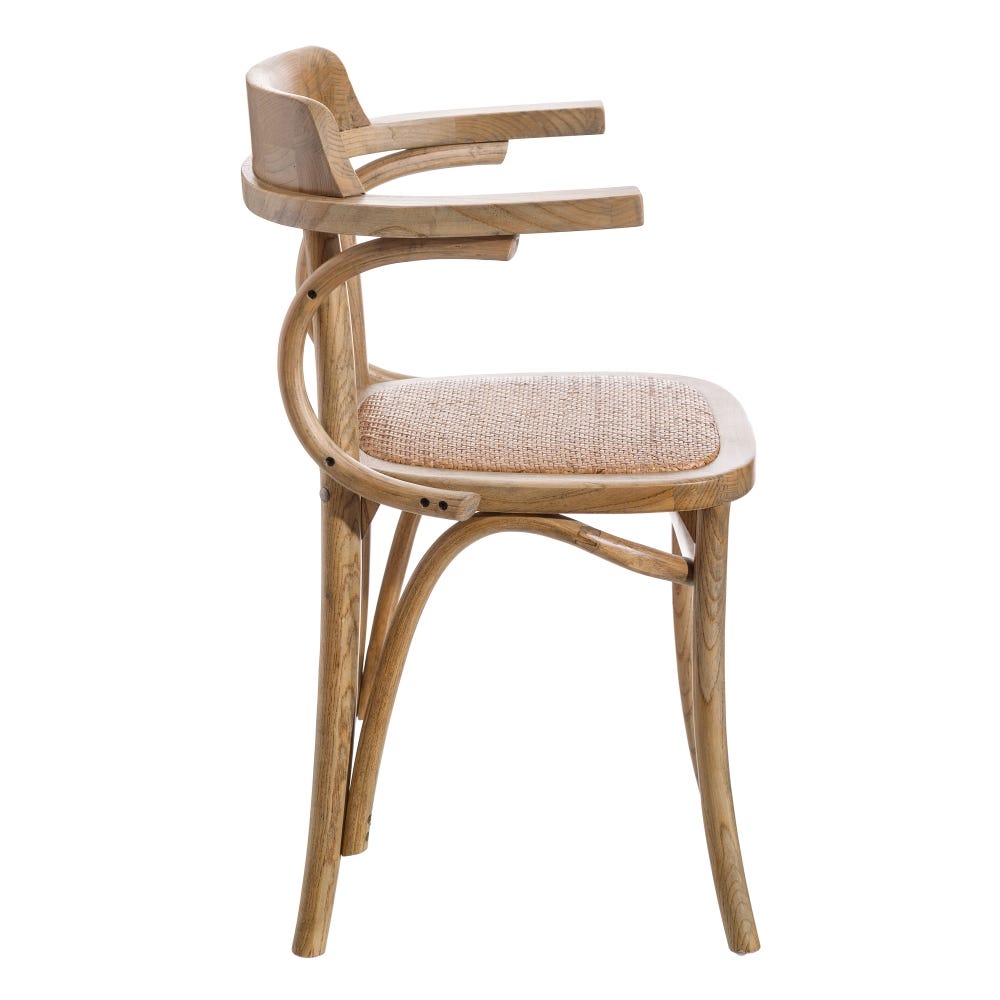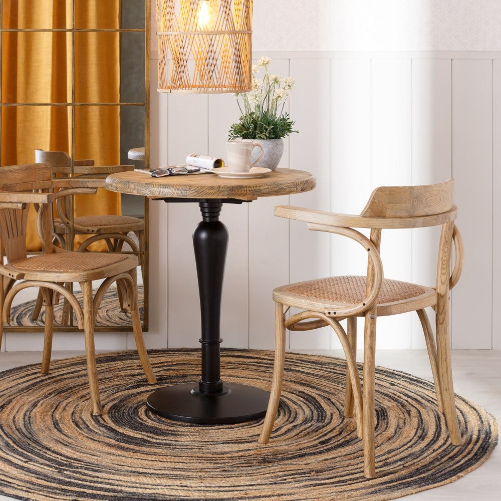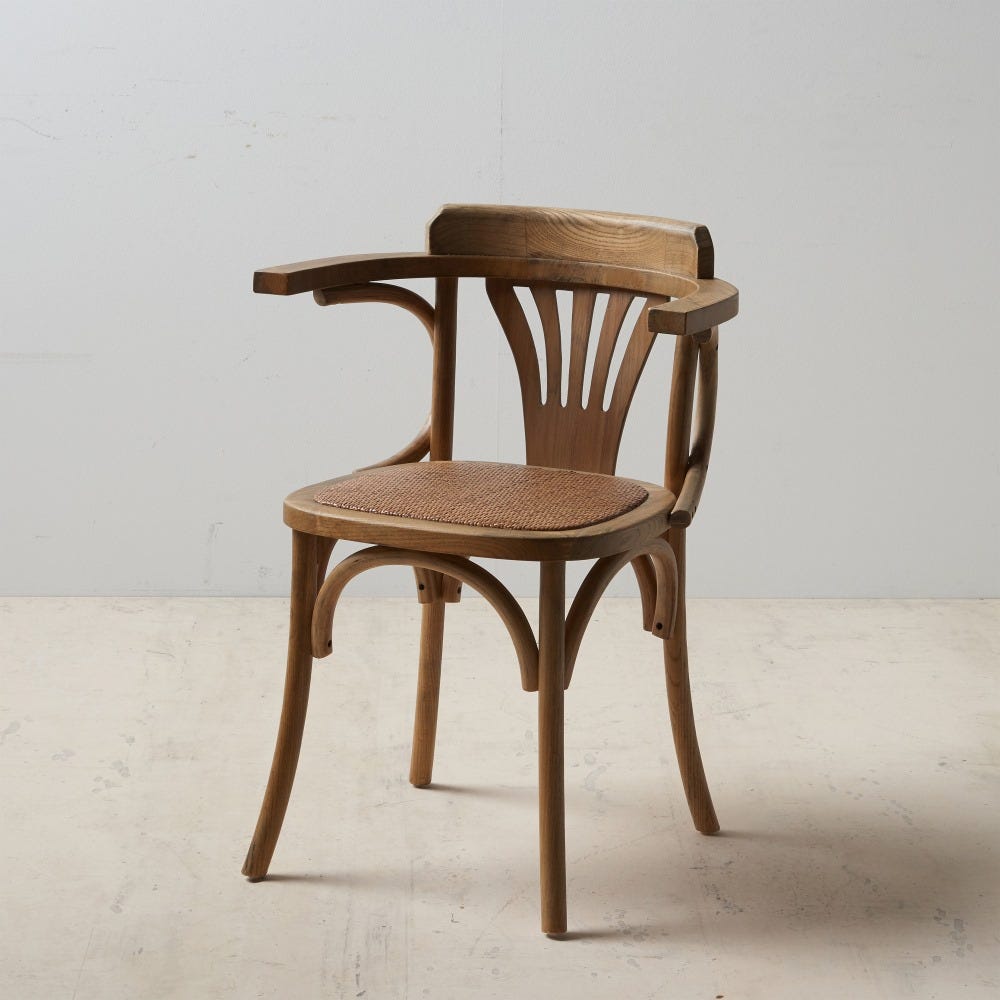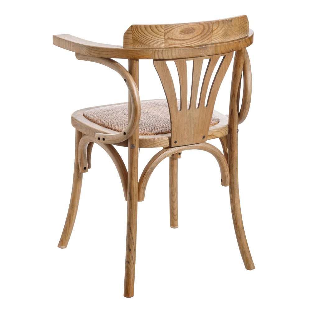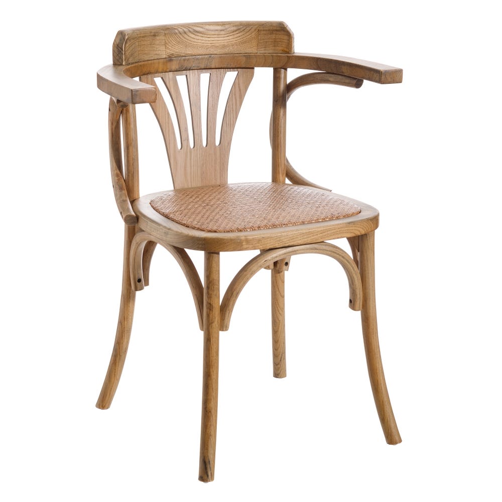 Esta silla ratán reposabrazos es un clásico de las sillas Thonet de siempre de estilo provenzal fabricada en madera de olmo natural y ratán barnizada en color marrón respetando la transparencia de sus betas naturales, tiene el diseño de las sillas de siempre de estilo clásico con un bonito color natural en el asiento de ratán y el clásico reposabrazos que nunca pasa de moda, si tu estilo decorativo se basa en los muebles de siempre en los espacios naturales y con una personalidad cuidadosa por la reminiscencia de los muebles de herencia esta es tu pieza sin ninguna duda, aunque como bien sabes las tendencias nos invitan a utilizar piezas de distintos estilos por lo que podrás introducir alguna pieza clásica aunque tu decoración vaya en otros estilos. Esta silla ratán reposabrazos viene para su compra en set de dos unidades. Ideal para cualquier estancia como sillas para mesas de cocina de comedor incluso para porches estos muebles quedan genial, eso si no se pueden mojar ni aguantan bien el exterior por lo que lo tendrás que proteger en invierno, como silla individual para utilizar en un escritorio, en un vestidor, dormitorio, zona de paso, un holl …….tiene mil versiones. El mantenimiento de este tipo de muebles es sencillo basta pasar una bayeta impregnada en jabón neutro especial muebles, es importante mantener siempre un grado de humedad para que este tipo de muebles te dure más tiempo como nuevo. Se presenta en las siguientes medidas: