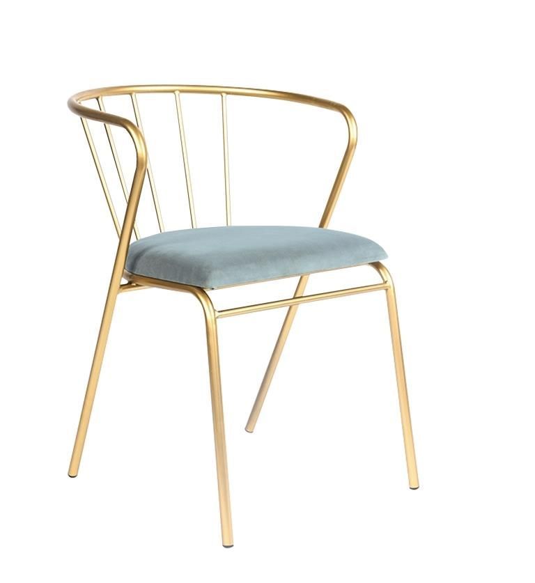 Esta silla velvet azul claro con estructura en metal dorada mate es una de las grandes tendencias de esta temporada reina en todas sus versiones, ni que decir tiene esta nueva moda de los muebles con toques dorados y el tapizado en suave terciopelo fino, el estilo chic que tanto nos encanta y que también encaja en cualquier estilo decorativo, te quedará genial en ambientes eclécticos, neoyorquinos, contemporáneos, chic…….si te apasionan las piezas con propia identidad esta es una de ellas, sencilla pero a la vez llamativa por su diseño y color. La podrás ubicar en salas de estar, cualquier rincón de tu casa, en un gran vestidor, como descalzadora en tu dormitorio, como silla de escritorio…….donde tu imaginación te proponga. Esta silla velvet azul tiene resto de colección velvet que solo la palabra ya nos indica que versión de piezas son, déjate seducir por la reminiscencia de los famosos años 60, sus patas metalizadas en color dorado marcan un claro estilo elegante y muy chic. Femenina y graciosa, su color destacará la decoración de tu salón, habitación o de tu oficina. Esta bonita silla velvet se caracteriza por su suavidad, sentirás el gusto palpable cuando lo acaricies gracias a su revestimiento de tejido 100 % terciopelo de algodón. Nuestro consejo: combínalo con un mueble auxiliar en un hall o una pequeña mesa de centro para tu salón, también puedes ponerle un cojín de este mismo estilo. De fácil mantenimiento basta pasar un rodillo anti pelusas con superficie adhesiva para quitar las pelusas y polvo, si tiene una mancha frota con un paño fuerte humedecido en agua caliente con jabón neutro, frota y deja secar, no usar productos agresivos ni anti manchas, no es tejido con tratamiento anti manchas. Ahora solo te queda pensar donde ubicarla y disfrutarla.
